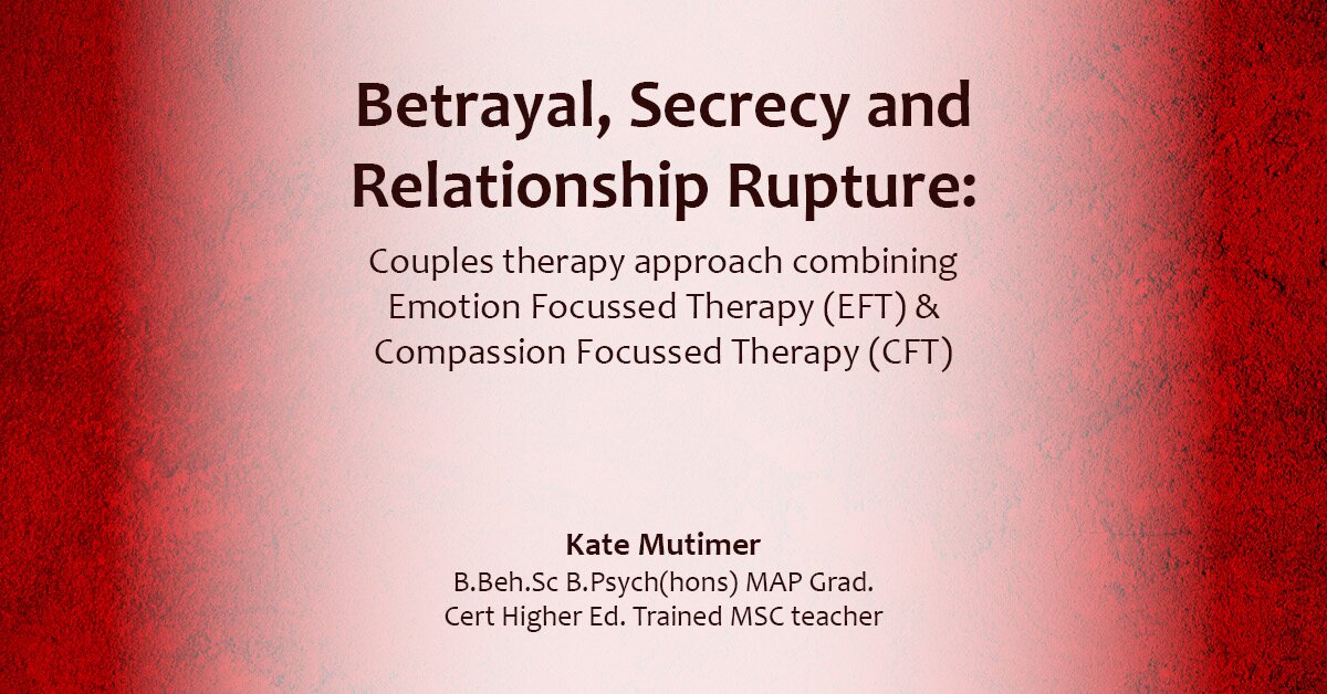 During our uncertain times committed primary couple relationships are facing increasingly complex issues and as a result challenging relating. Perceived acts of betrayal or secrecy within committed relationships can rupture the natural flow of important norms of intimate connection. Many contextual factors can complicate issues of what is private versus secret, and what form of communication or relating represents betrayal and why. These factors include, social media use, access to pornography and sex work, social isolation restrictions in the times of COVID, periods of long distance relating, separated or blended family structures, and at times each individuals’ overwhelming and competing life demands. As Esther Peral (2007) unpacks in Mating in Captivity a modern primary committed relationship is looked to function as secure base, providing both practical and domestic support and emotional and sexual intimacy. This is a challenging load and ruptures to connection are understandably common. Many couples, unwilling or unable to separate for psychological, emotional, familial and financial reasons, and will settle for a less than satisfying experience relating, in essence building a defensive wall around the rupture event, their internal experience and the impacted area of their relating. The pain of relationship rupture in these forms is often endured or repeatedly cycled through with mental health consequences for one or both members of the couple. However, using processes drawn from CFT and EFT, this kind of couple distress can an opportunity for the deepening of intimate emotional relating, the healing of old wounds and the establishment of better skills of emotional regulation (for the individuals) and the co-regulation of emotions (for the couple). Preliminary research in marital satisfaction suggest the mediating factors of resilience and self-compassion (Amani & Khosroshahi, 2020), while high psychological flexibility and self-compassion has been shown to mediate chaotic-enmeshment and anxiety in family functioning (Berryhill, Hayes & Lloyd, 2018). Drawing from her 23 years of clinical practice, personal journey of conscious relating, and wide variety of resources from this fascinating area, most specifically CFT and EFT, this workshop will impart conceptual frameworks and practical powerful processes that can be used directly in couples therapy to navigate this delicate terrain and improve individual life satisfaction and couple relationship quality.